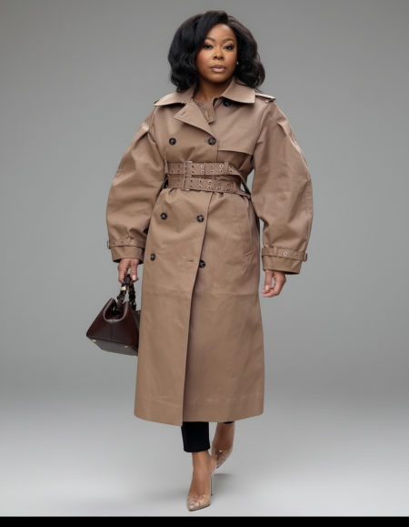 Trench Coupe-Vent Décontracté Sa coupe longue et fluide structure l’allure tout en laissant une grande liberté de mouvement. Le double boutonnage croisé, signature intemporelle du trench, apporte une touche de caractère et de prestance, tandis que la ceinture intégrée permet d’ajuster la taille selon l’envie : marquée pour une silhouette affirmée ou plus lâche pour un style naturellement décontracté. Le col large et les manches longues renforcent cette élégance discrète, propre à la femme moderne.